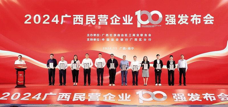 11月1日,2024广西民营企业100强发布会在南宁市举行,会上发布了广西民营企业百强系列榜单。 □自治区党委统战部非公有制经济工作处、非公有制经济代表人士工作处