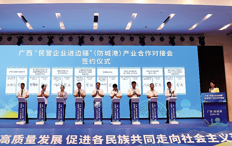 2024年8月29日,广西“民营企业进边疆”(防城港)产业合作对接会举办。图为签约仪式现场。