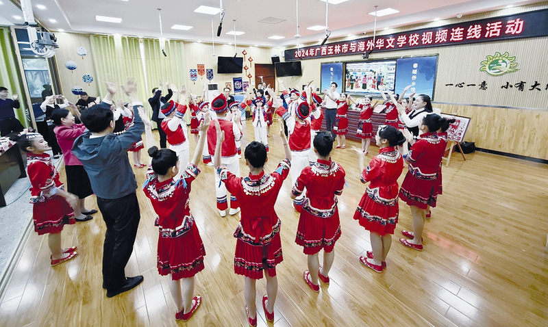 2024年4月9日,“歌飞三月三·春暖侨乡情”2024年广西玉林市连线海外华文学校和侨社团活动举行。图为活动主会场玉州区金港小学。 □玉林市委统战部