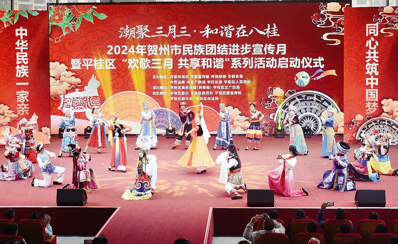 图一:2024年4月8日,贺州市“潮聚三月三·和谐在八桂”民族团结进步宣传月系列活动启动。