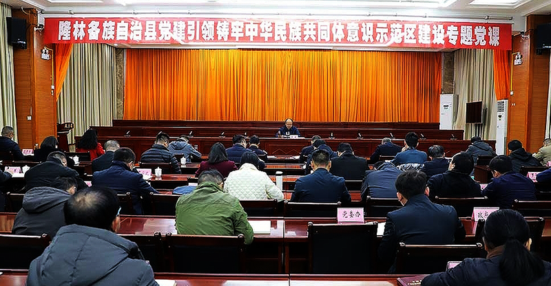 隆林县充分发挥“关键少数”带动“绝大多数”示范效应,把铸牢中华民族共同体意识宣传教育融入党委理论学习中心组、党支部“三会一课”、主题党日活动中。县乡村三级党组织书记以学习贯彻习近平总书记关于加强和改进民族工作的重要思想,紧扣加强民族团结进步、发展新质生产力、推动乡村全面振兴、强化基层治理、提升服务群众本领等内容,带头在本单位、本系统、本领域上一次专题党课。目前,全县共开讲铸牢中华民族共同体意识专题党课200多场次。
