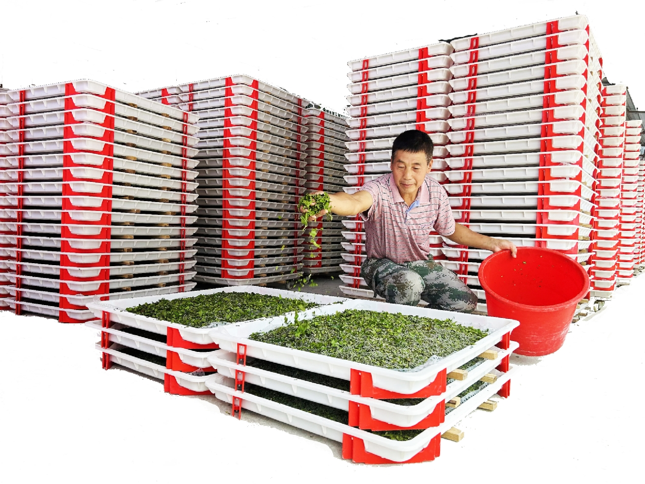 图为蚕农正在小蚕共育基地喂食小蚕。 (本报通讯员 骆俐羽 摄) 本报通讯员 龙绍仙