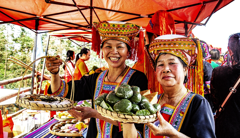 3月26日,“山歌搭起连心桥 区域协作促发展” —— 2025年蒙山县夏宜瑶族乡、平南县马练瑶族乡、藤县大黎镇、藤县宁康乡友好乡镇山歌对唱活动举行,活动以山歌为媒,融合非遗展演、生态共建、民俗互动、美食展示于一体,绘就了一幅民族团结的生动画卷。图为参加活动的群众展示特色美食。