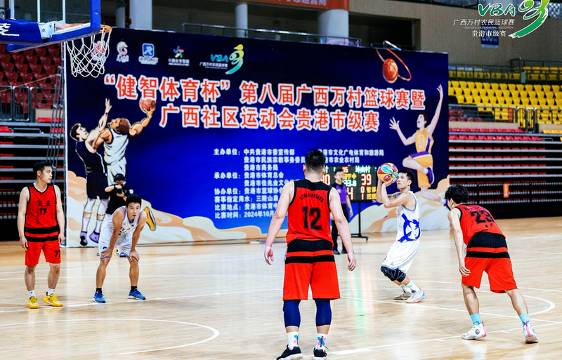 “健智体育杯”第八届广西万村篮球赛暨广西社区运动会贵港市级赛现场。 (贵港市民宗委供图) 本报通讯员 梁健