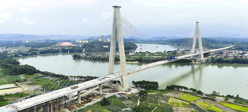 横钦高速郁江特大桥主梁顺利合龙。 (南宁海事局供图)