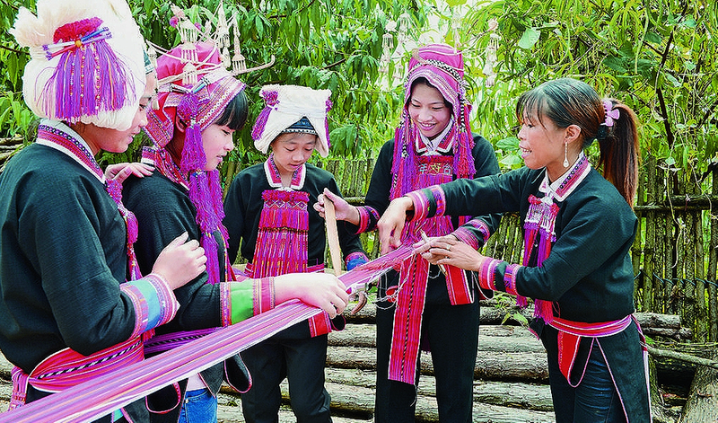 田林县各族群众在编织腰带 (来源:田林县委统战部) □本报通讯员姚伦伸