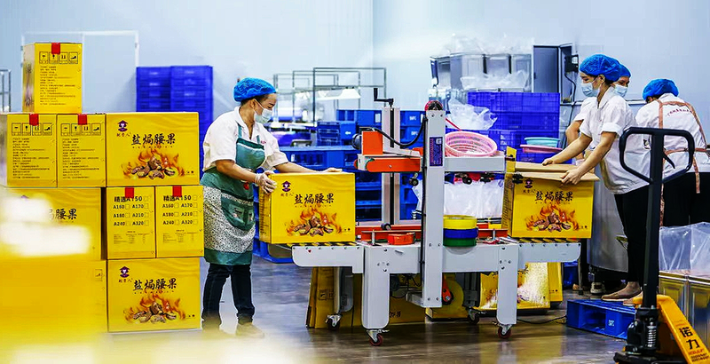 靖西市一家腰果加工企业内,工人们正有条不紊地进行生产。 靖西市委统战部供图 本报通讯员 梁姜银