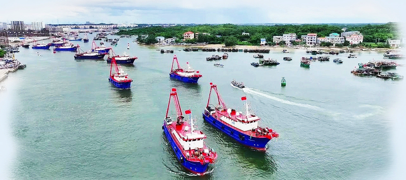渔船从防城港企沙渔港扬帆出海。(防城港市融媒体中心供图)