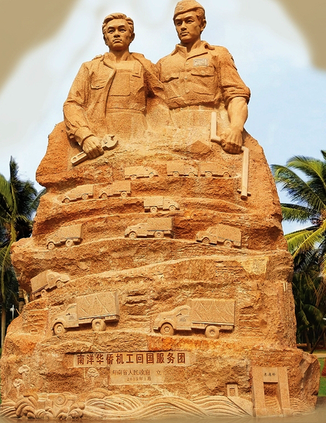 ▲南洋华侨机工回国服务团雕塑。(凭祥市侨联供图) 本报记者 李春玲 刘喜芬 吴佩鸿