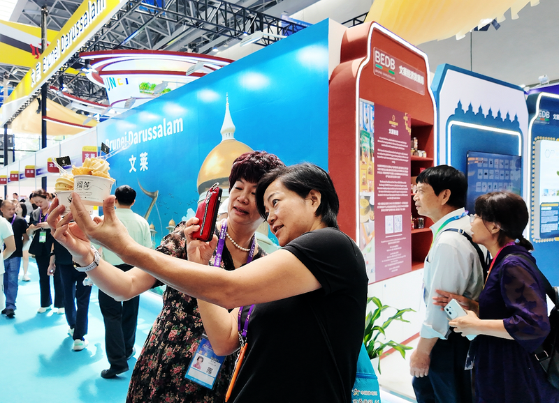 ▲观众在东博会现场打卡留念。本报记者 陈铭柯/摄