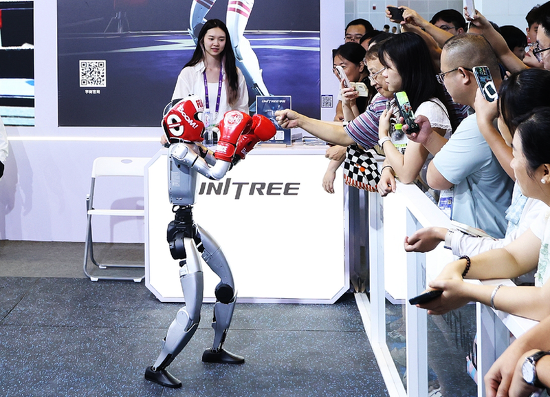 ▲拳击机器人与观众互动。 本报记者 莫齐威/摄