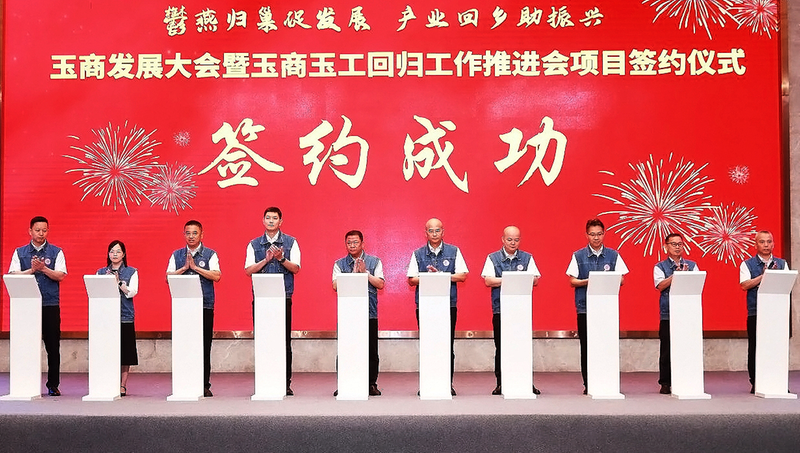 8月8日,“鬱燕归巢促发展 产业回乡助振兴”2025年玉商发展大会暨 玉商玉工回归工作推进会召开,图为项目签约仪式。 玉林市委统战部供图 玉林,毗邻粤港澳大湾区,自古被誉为“岭南都会”,商业底蕴深厚,民营经济总量居广西第二;同时也是全国著名、广西最大的侨乡,侨资源十分丰富。近年来,玉林始终将民营经济作为高质量发展的主力军,以“肯吃苦、敢创业、守诚信、勇担当”的新时代“玉商”精神为内核,以构建亲清政商关系为基石,将“玉商玉工回归”作为驱动民营经济高质量发展的强大引擎,五次获评“浙商最佳投资目的地”,群众安全感稳居广西前列。