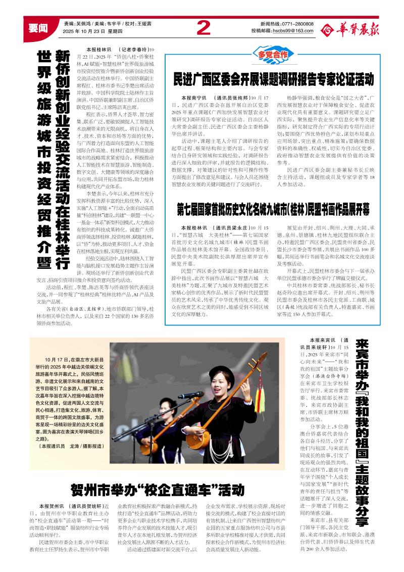 民建贺州市委会主委、市中华职业教育社主任罗扬生表示,贺州市中华职业教育社积极探索产教融合新模式,持续打造“校企直通车”品牌活动,将助力更多企业与职业技术学校携手,共同培养符合产业发展的技术技能人才,吸引青年人才在本地扎根发展,为贺州经济社会发展注入源源不断的人才活力。