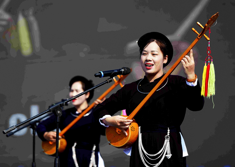 10月17日,在崇左市大新县举行的2025年中越边关侬峒文化旅游嘉年华开幕式上,民俗风情巡游、非遗文化展示和来自越南的文艺节目吸引了众多游人。据了解,本次嘉年华旨在深入挖掘中越边境特色文化资源,促进两国人文交流与民心相通,打造集文化、旅游、体育、商贸于一体的跨国文旅盛事,为游客呈现一场精彩纷呈的边关文化盛宴。图为嘉宾在表演天琴弹唱《回乡之路》。(本报通讯员 龙涛/摄影报道)