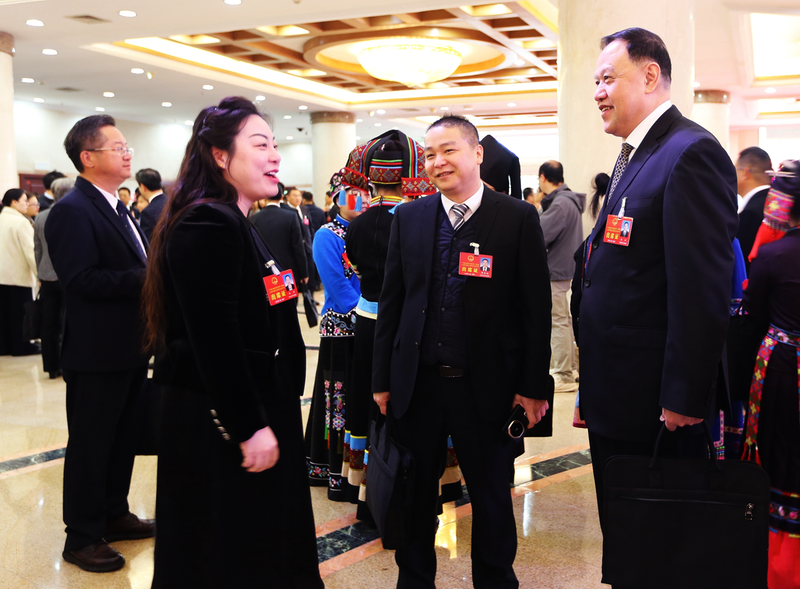 ⑦自治区人大代表在会场外交流。