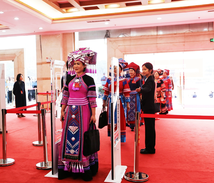 ④自治区人大代表步入会场。