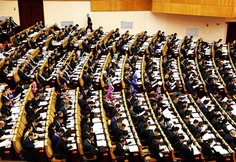①自治区十四届人大五次会议现场。