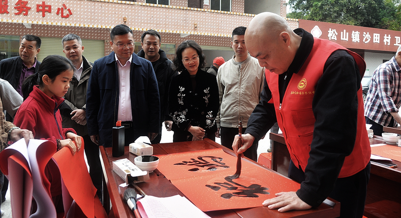 2月7日上午,“侨心聚福 万福迎春”义写春联活动在容县松 山镇沙田村举办。 容县侨联供图 在2026年春节即将来临之际,为让广大侨胞和归侨侨眷度过一个欢乐、祥和的新春佳节。近日,广西各级侨务部门开展新春走访慰问活动,为侨界群众送去党和政府的关怀和祝福。