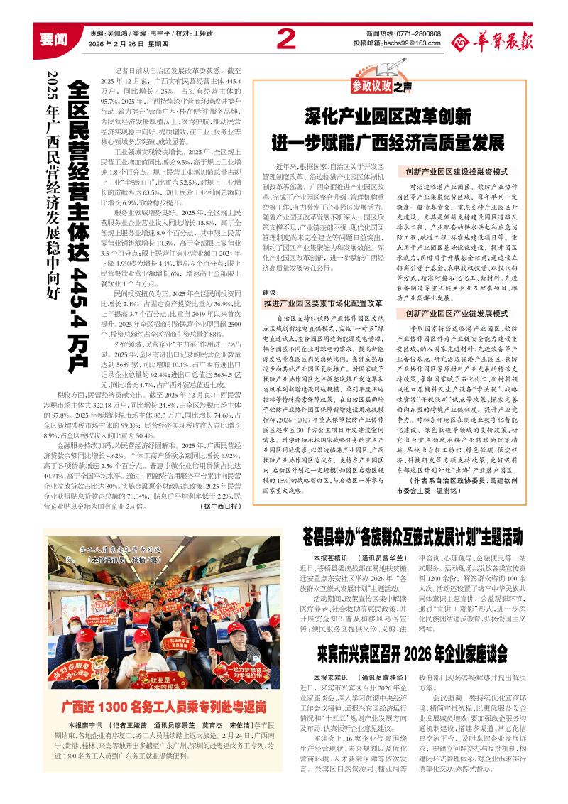 来宾市兴宾区召开2026年企业家座谈会