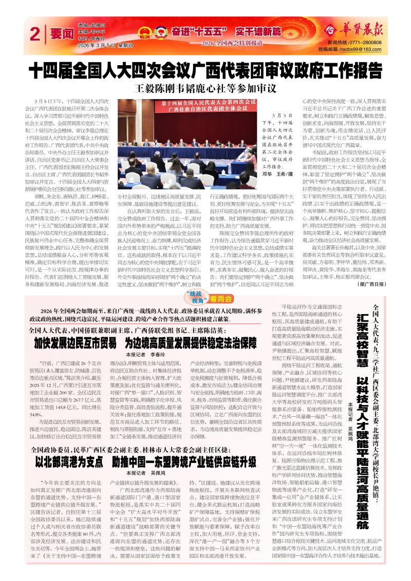 十四届全国人大四次会议广西代表团审议政府工作报告