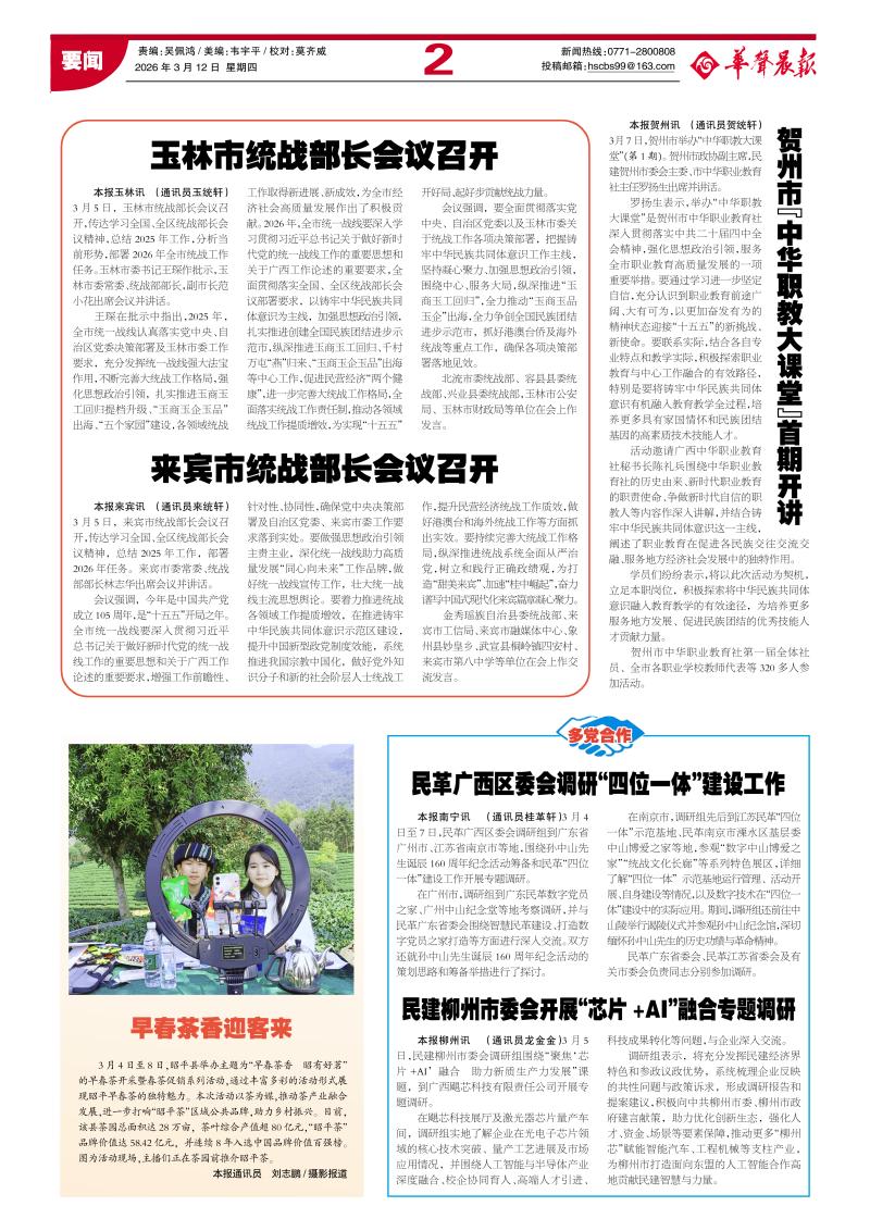 本报贺州讯 (通讯员贺统轩)3月7日,贺州市举办“中华职教大课堂”(第1期)。贺州市政协副主席,民建贺州市委会主委、市中华职业教育社主任罗扬生出席并讲话。