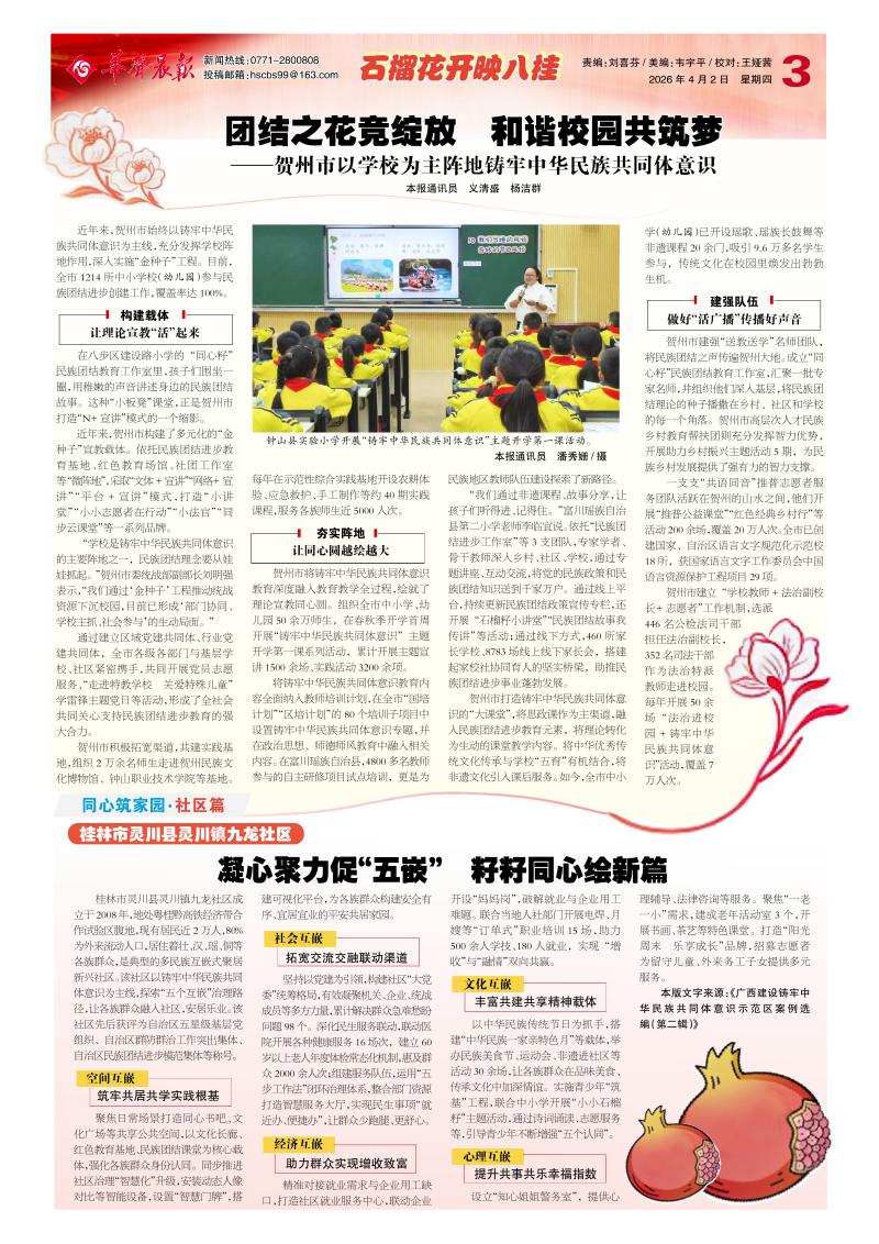 “学校是铸牢中华民族共同体意识的主要阵地之一,民族团结理念要从娃娃抓起。”贺州市委统战部副部长刘明强表示,“我们通过‘金种子’工程推动统战资源下沉校园,目前已形成‘部门协同、学校主抓、社会参与’的生动局面。”